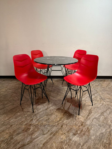 میز و صندلی غذاخوری فایبرگلاس پایه میله ای اسپایدر طرح دار السا میز برتویا پایه فلزی