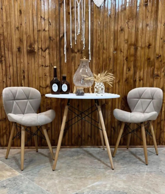 میز و صندلی پارچه ای پایه چوبی ست چهار نفره غذاخوری خانه و آشپزخانه