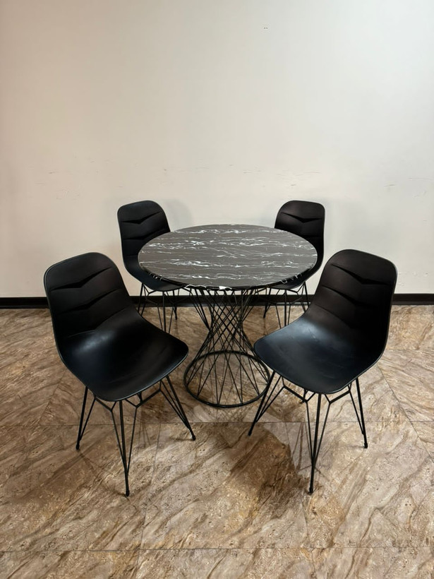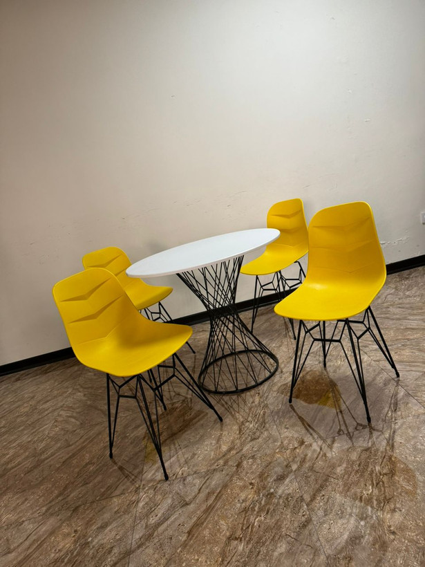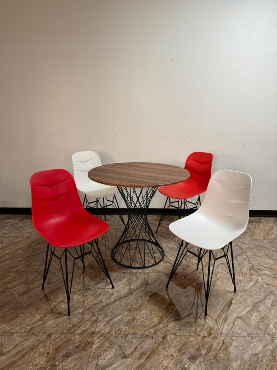 ست ۴ نفره میز غذاخوری پایه فلزی و صندلی فایبرگلاس نشکن شرکتی