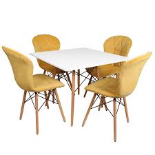 ست ۴ نفره میز غذاخوری ام دی اف و صندلی زین اسبی پارچه ای