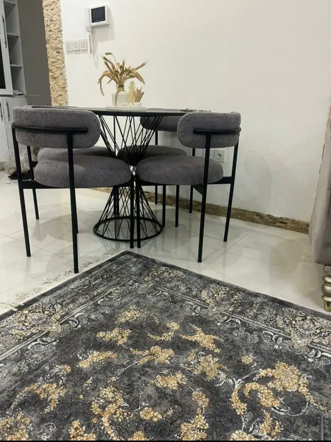 میز و صندلی غذاخوری تدی پارچه ای پایه فلزی چهار نفره