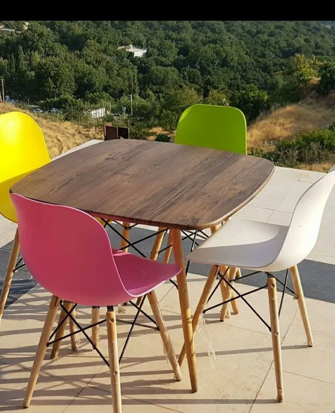 میز و صندلی ناهارخوری کافه رستوران فضای باز چهار نفره آریا پایه چوبی نشیمن فایبرگلاس