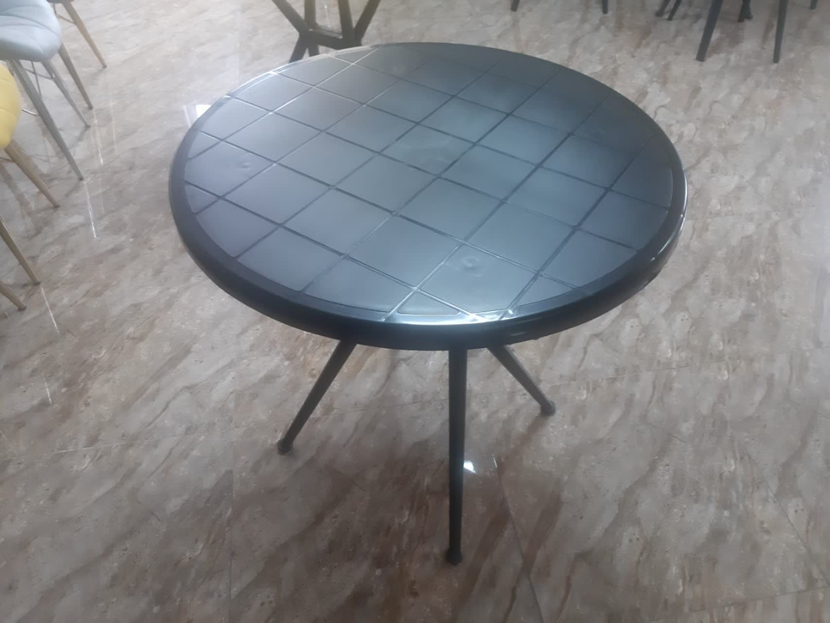 میز ناهارخوری صفحه فایبرگلاس پایه پلیمری قطر 80